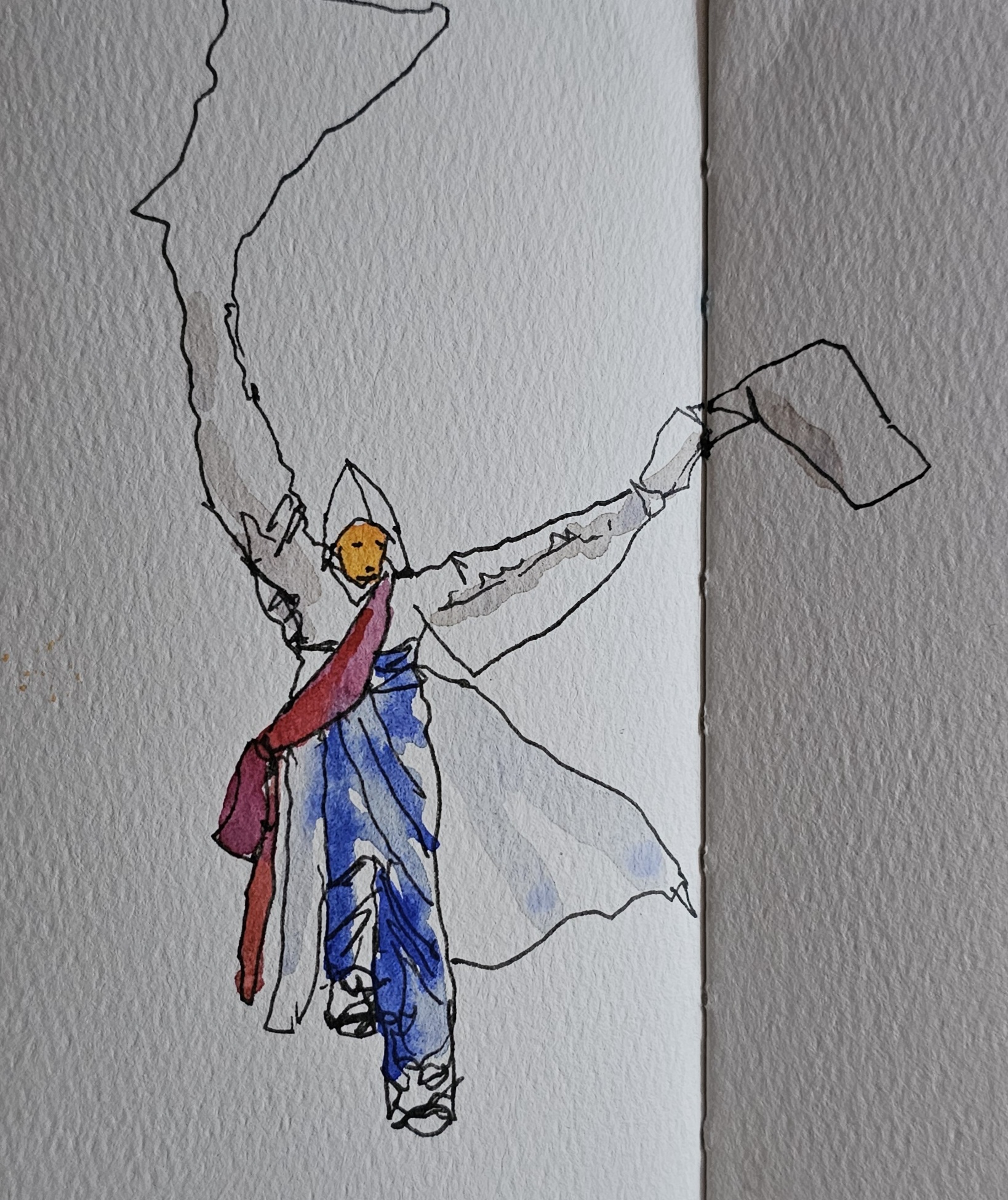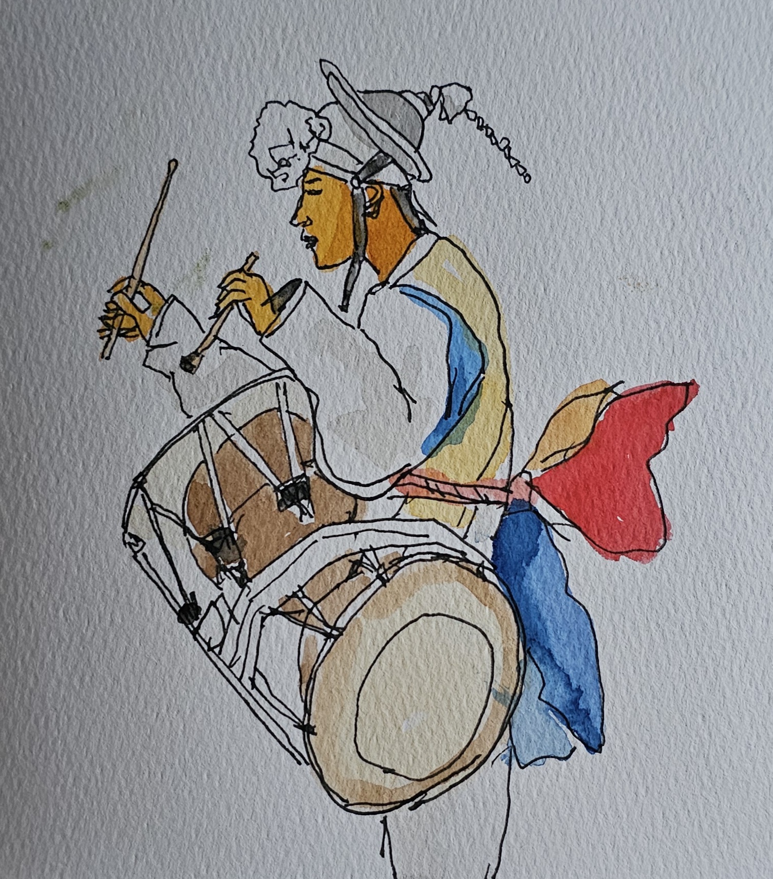 핀트레스트 사진보고 만년필로 빠르게 바로 그리고 물감으로 대충 쓱 칠했습니다.