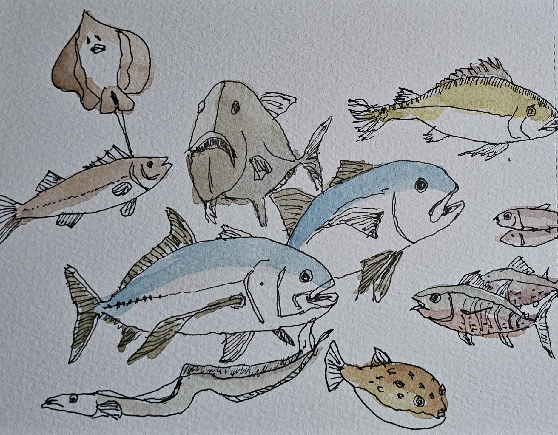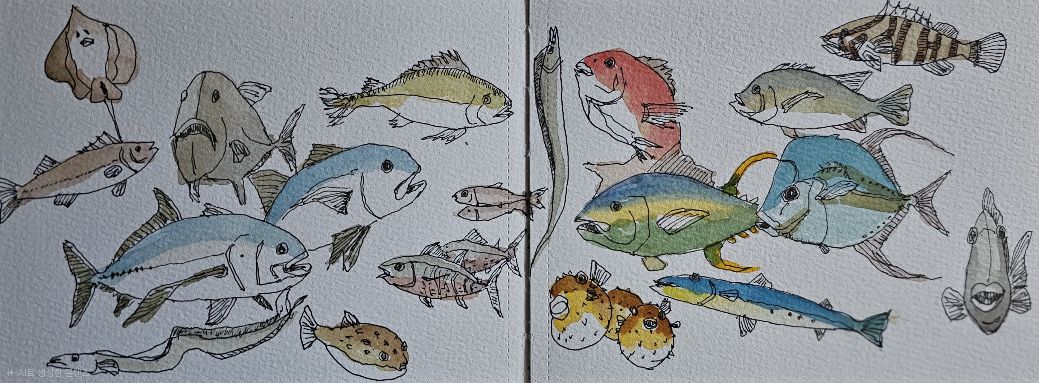 어젠 조금 바빠 얼마전 그린 물고기그림 간단한 채색이 515일차 미션입니다.